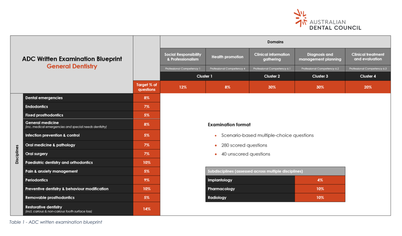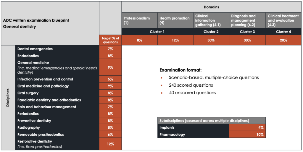 For complete details and the latest updates, candidates are advised to refer to the official ADC Written Examination Handbook available on the Australian Dental Council website:https://www.adc.org.au/files/assessment/handbooks/ADC_Written_Examination_Handbook_for_General_Dentistry.pdf ” (The Australian Dental Council)